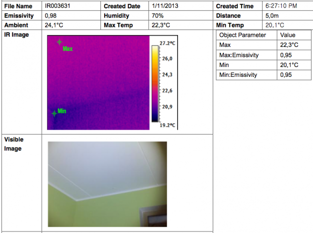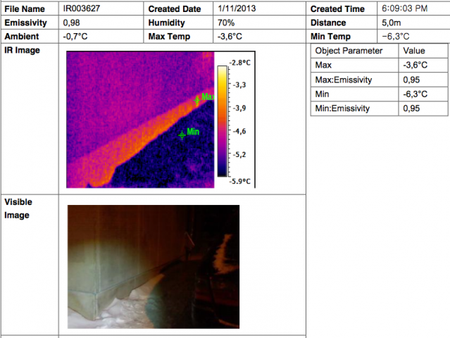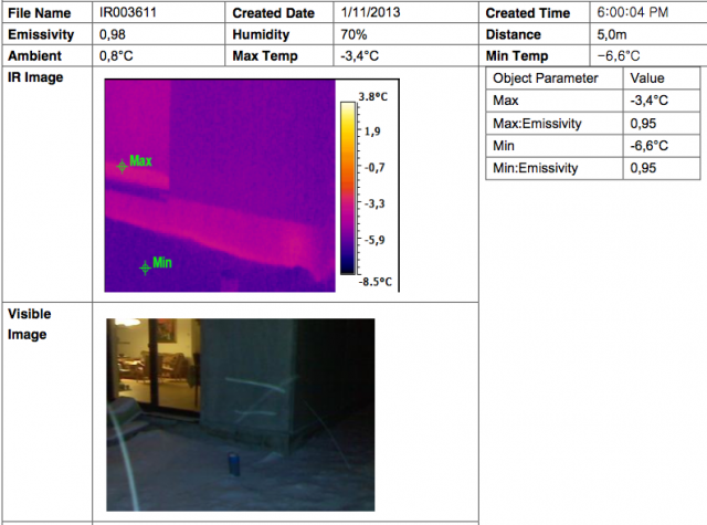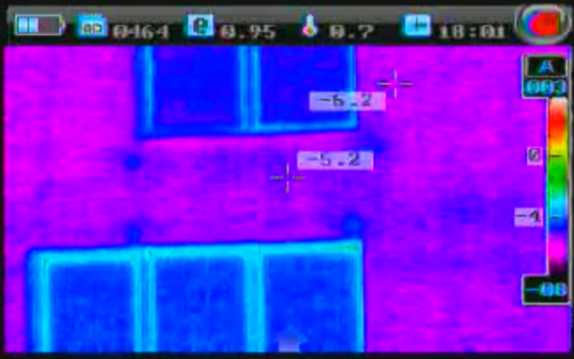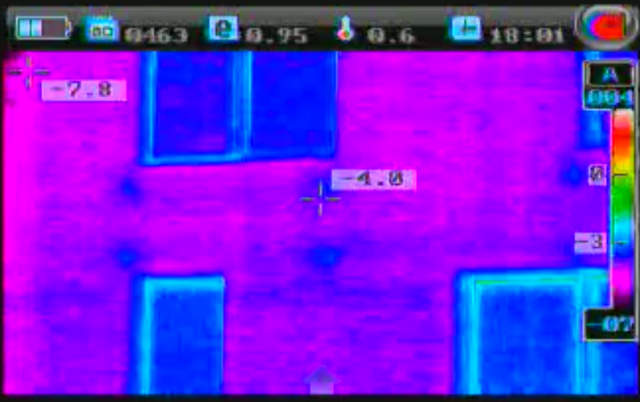 Внутренние и наружные термо-снимки каменного здания, утеплённого полиуретановой пеной.